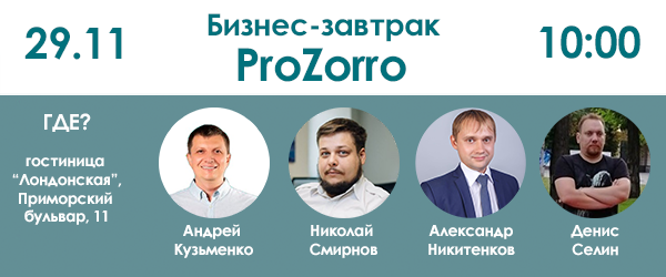 Бізнес-сніданок з держзакупівель в ProZorro за участю заступника директора ДП «Прозорро» Андрія Кузьменка, експертів Платформи Громадський Контроль, юридичної компанії "Права Справа" та торгових майданчиків.