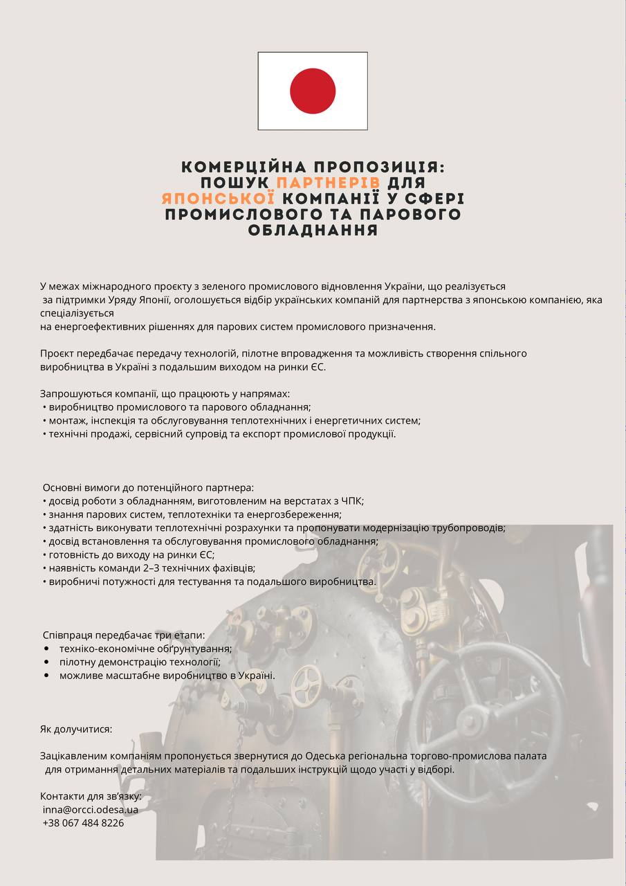 Зацікавлені компанії можуть надсилати комерційні пропозиції з цінами CIF, технічними характеристиками, наявними сертифікатами та строками на