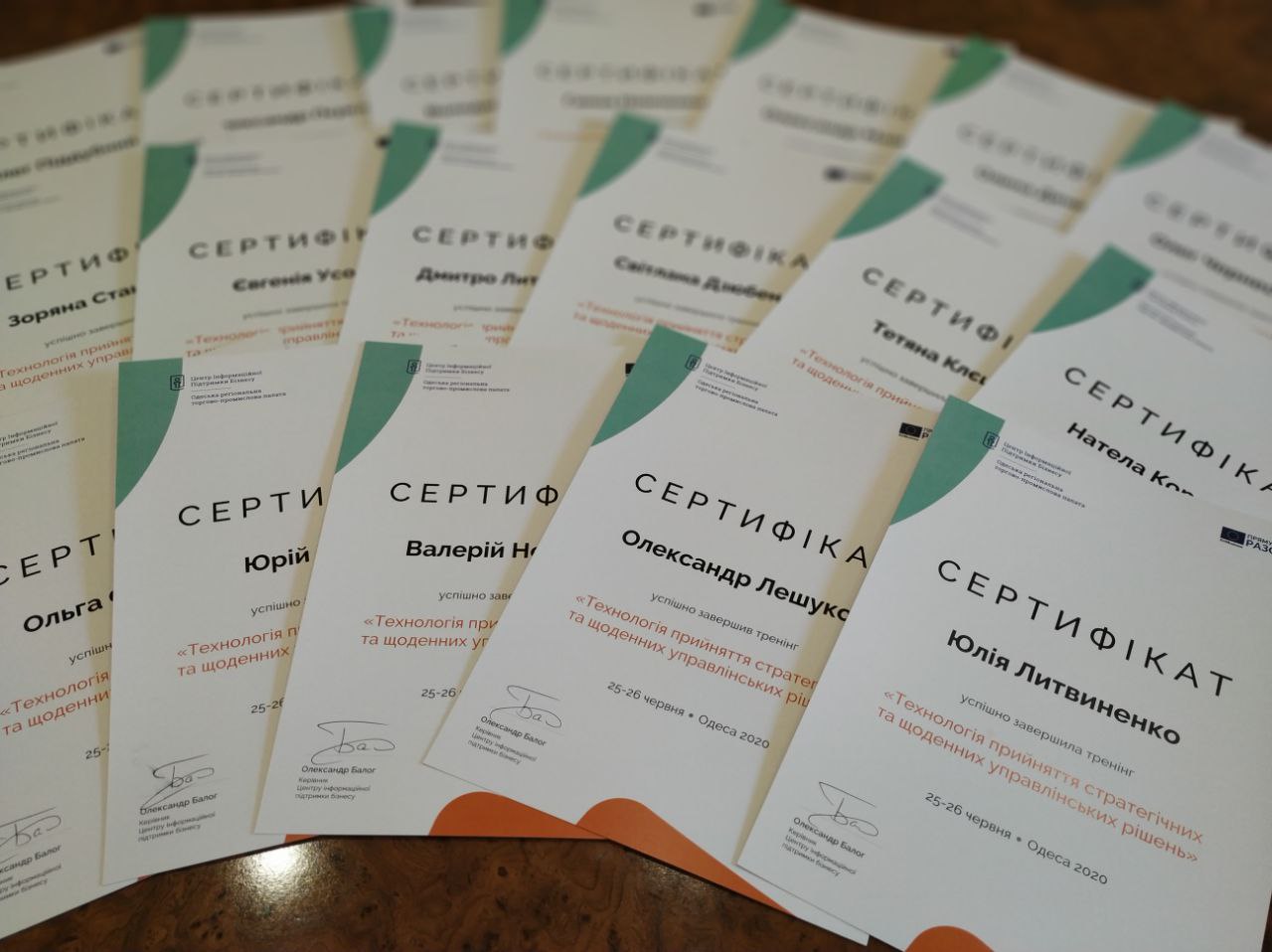 Наприкінці заходу Керівник Центру інформаційної підтримки бізнесу м. Одеса Олександр Балог вручив кожному учаснику сертифікат за вдале проходження дводенного тренінгу.