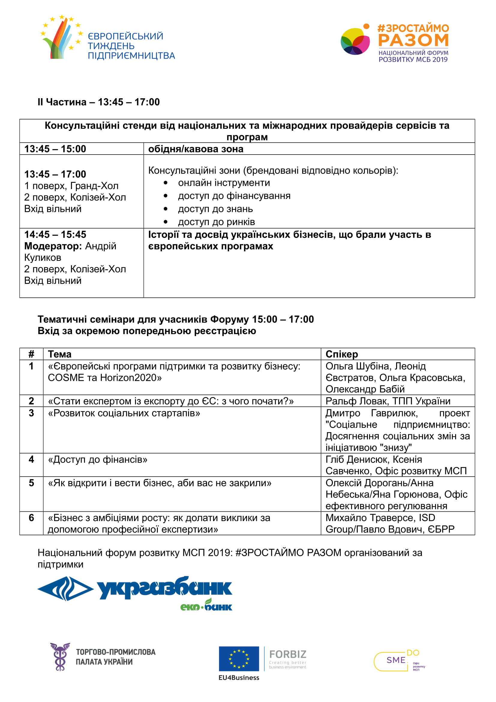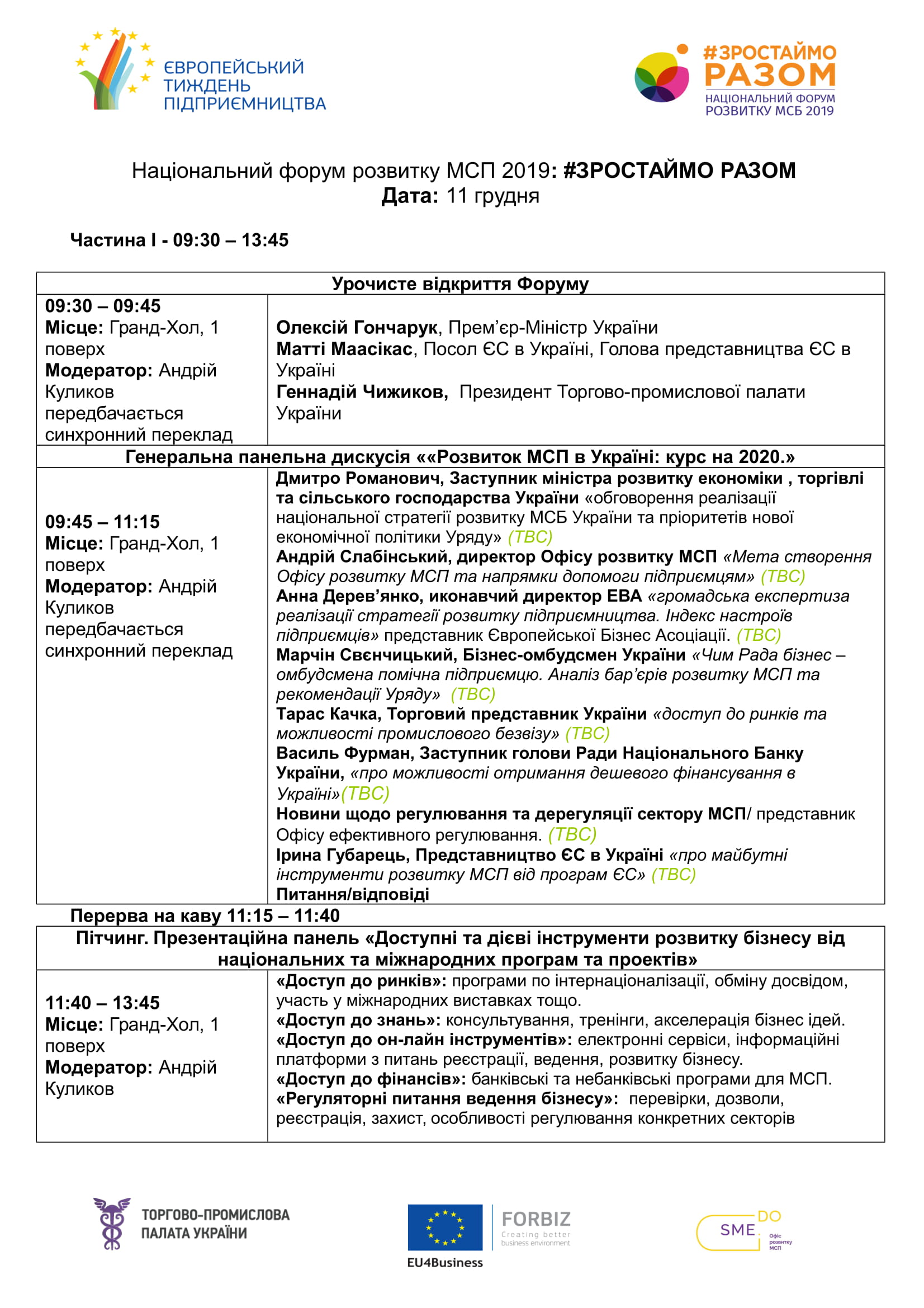 Цьогорічний Форум буде заключним в низці заходів Європейського тижня МСП в Україні, організаторами якого виступають ТПП України, Офіс Розвитку Малого і Середнього Підприємництва при Мінеконорозвитку та проект EU4Business/FORBIZ за фінансової підтримки Делегації Європейського Союзу в Україні.