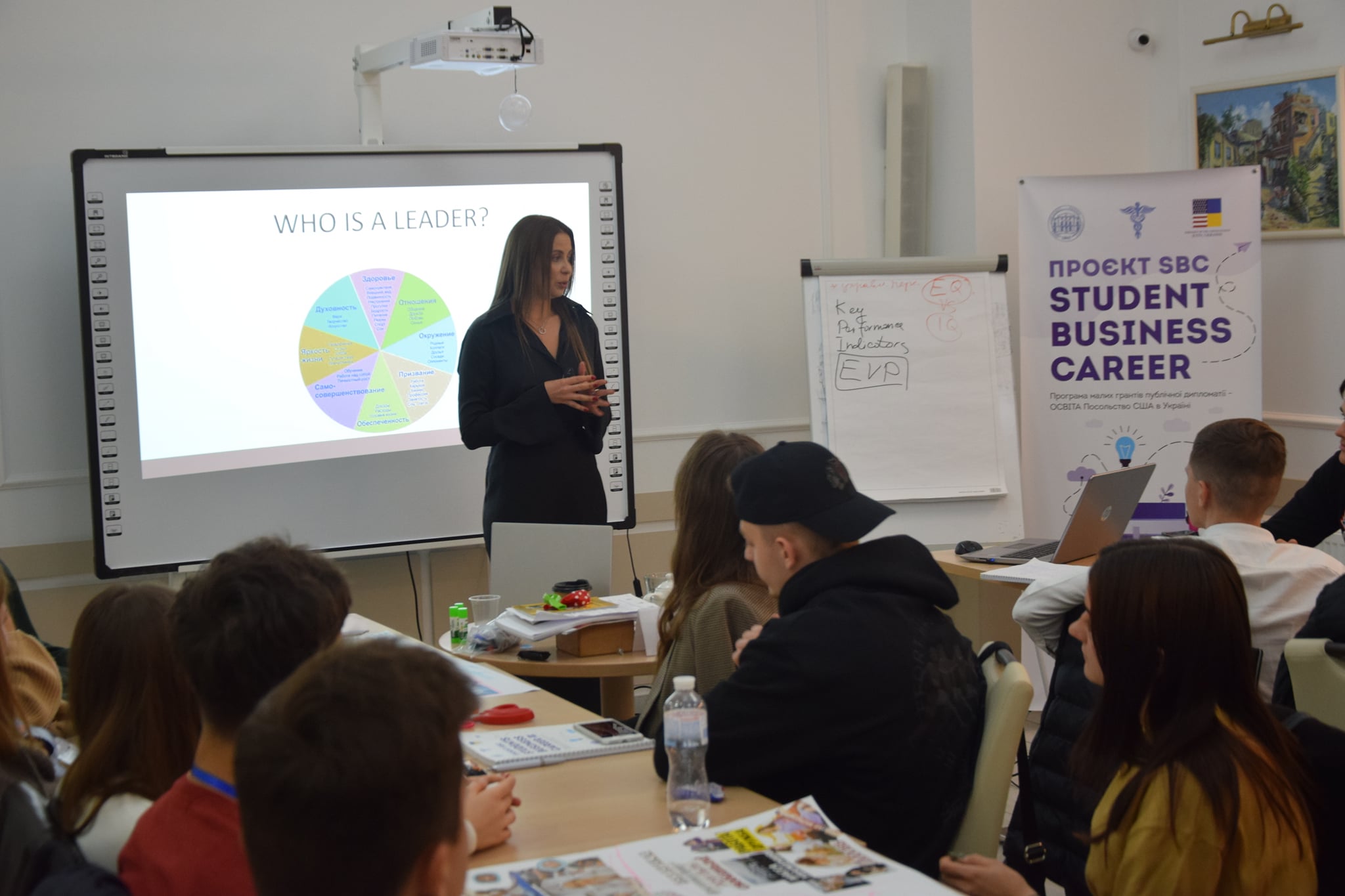 Ірина Зебзєєва (Одеса) - поділилась безцінним досвідом з учасниками програми SBC (Students Business Career) щодо отримання теоретично-практичних підходів у світі лідерства; визначення, що таке лідерство; аргументація лідерських характеристик людини, отримання системного портрету лідера та багато іншого.